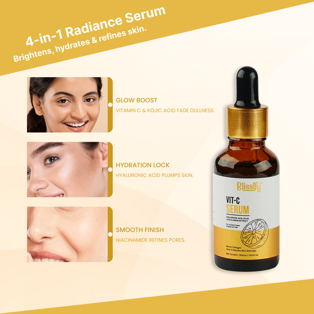 Blissify Vitamin C Face Serum with Hyaluronic Acid & Lemon Extract | Brightening & Hydrating Formula | 30 ml
