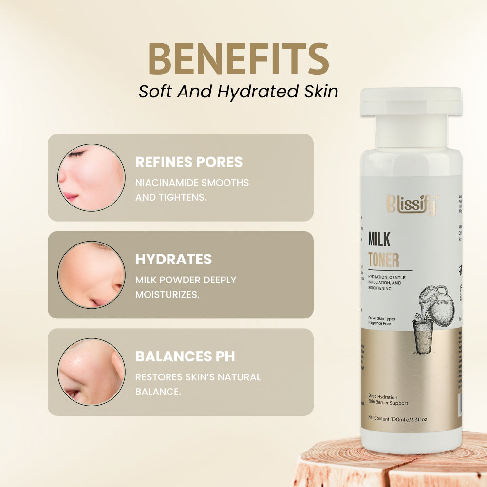 A refreshing milk toner with Niacinamide and Milk Powder to hydrate and balance your skin.