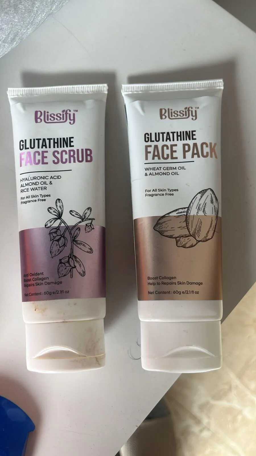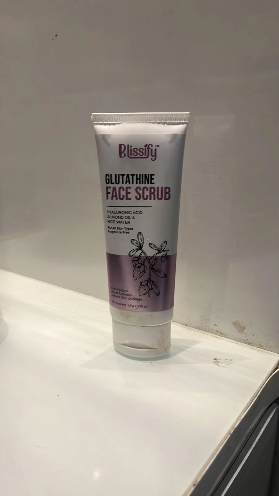 The Blissify Glutathione Face Scrub is an exfoliating formula that gently removes dead skin cells while enriching your skin with the brightening benefits of Glutathione, the hydrating power of Hyaluronic Acid, and the nourishment of Almond Oil. This scrub helps smoothen the skin's texture, leaving your face refreshed, glowing, and deeply hydrated.