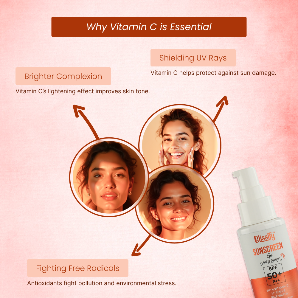Blissify Vitamin C Sunscreen with Ceramides, Niacinamide & Vitamin E | Broad Spectrum SPF Protection